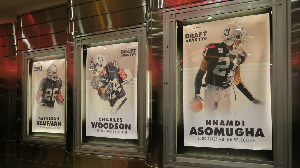 The Draft Party is a celebration with fans to welcome the next stars to the exclusive Raiders’ family. I developed vintage posters of former first round draft picks and alumni that would be in attendance. Next, I created a photo activation where fans could recreate signing a contract with the head coach and general manager. Finally, I created a take-home gift for people who attended the event. Sticking with the vintage theme, I developed a pennant to remember this event.
